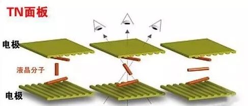 传统TN面板液晶分子排列方式